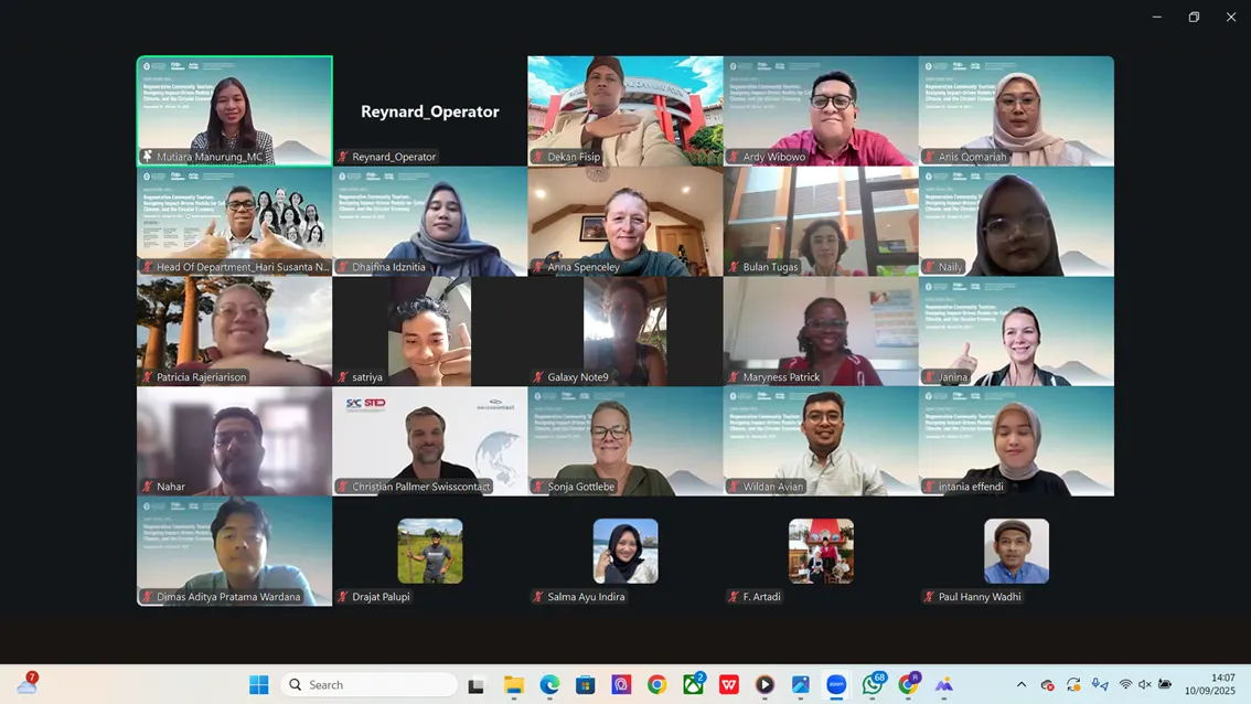 Dilaksanakan secara daring melalui Zoom, short course ini akan berlangsung dari 10 September hingga 8 Oktober 2025, menampilkan serangkaian kuliah dan diskusi dengan praktisi serta peneliti terkemuka dari Indonesia, Australia, Inggris, Irlandia, Islandia, Uzbekistan, dan Portugal, yang masing-masing menghadirkan keahlian dari bidang mereka untuk memperkaya pemahaman peserta mengenai regenerative community tourism dari berbagai perspektif.
