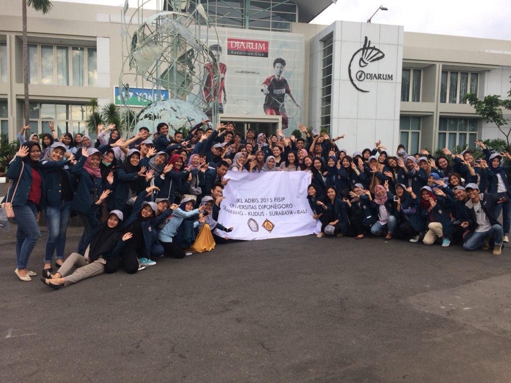 One of the most awaited moments by students is the Field Work Lecture (KKL), a once in a lifetime moment in lectures that is a pity to miss. On Monday (23/4), the 2015 batch of Business Administration (Adbis) students of the Faculty of Social and Political Sciences, Diponegoro University, were dispatched to carry out KKL. The activity which lasted for 5 (five) days starting April 23-28 2018 with the aim of Kudus-East Java-Bali, by visiting the Djarum, Yakult, Suprama, Cok Ajik Konveksi (Krisna) Companies, and several tourist objects in Bali. The head of the 2015 class of 2015 Business Administration student KKL activities, Faizal, said that KKL activities were held with the aim of adding insight to students about companies in Indonesia and seeing the production process firsthand.